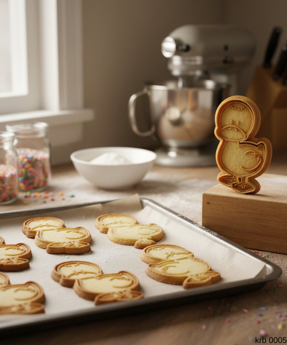 Hamurun kalıptan daha kolay ayrılması için kesim yapmadan önce hamurun üzerine ince bir poşet veya streç film sererek işlem yapabilirsiniz. Bu yöntem şeklin bozulmasını engeller, detayların daha belirgin görünmesini sağlar. Kesimden sonra üst detay kalıbı hafif baskı ile kullanılarak civcivin yüz ve kanat dokusu daha net hale getirilebilir.