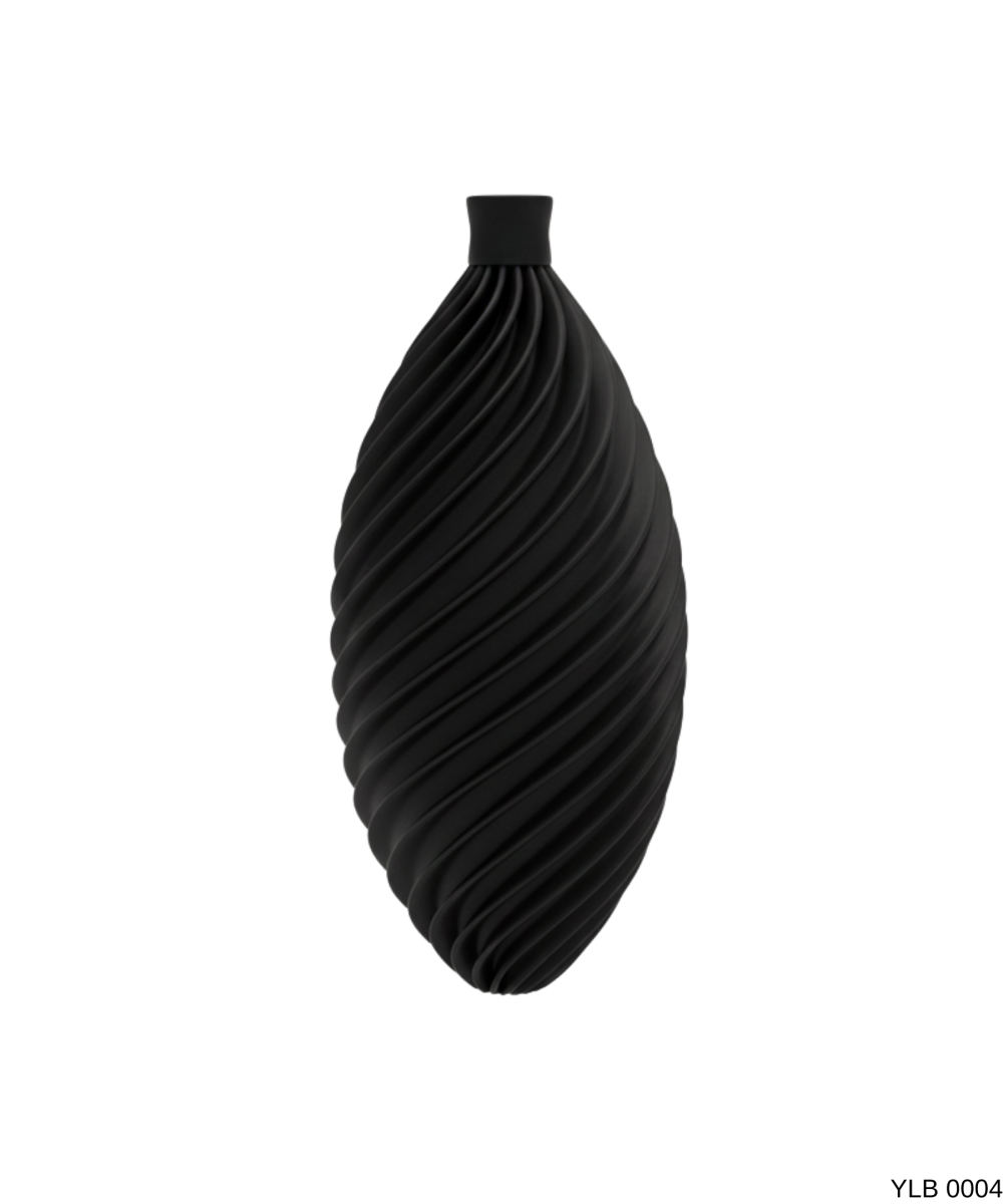 Siyah uzun spiral desenli yuzeyi ve ince formu ile yilbasi dekorasyonunda minimal ve sik bir stil sunar. Uzun yapisi sayesinde yilbasi agacinda farkli bir siluet olusturur ve klasik yuvarlak suslerle uyumlu bir butunluk saglar.