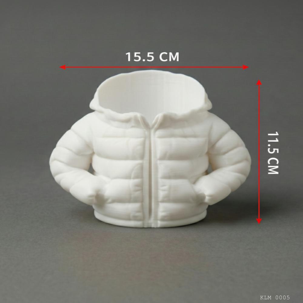 Siyah şişme mont formunda tasarlanan bu büyük boy masaüstü organizer, masa üzerindeki kalemler, gözlükler ve küçük ofis aksesuarlarını bir arada düzenlemek için üretilmiştir. Geniş iç hacmi sayesinde çok sayıda ürünü aynı anda saklamaya uygundur. Sert plastik gövdesi, dayanıklı ve dengeli bir kullanım sunar.