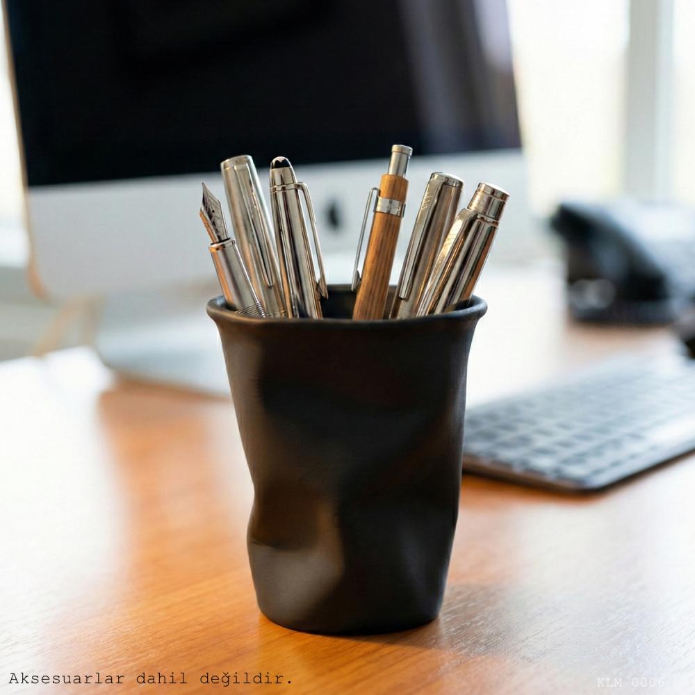 Siyah renkte üretilen bu kalemlik, özel olarak verilmiş yamuk formlu bardak tasarımına sahiptir. Klasik silindir kalemliklerden farklı olarak dalgalı ve eğimli gövdesiyle masa üzerinde modern ve dikkat çekici bir görünüm oluşturur.