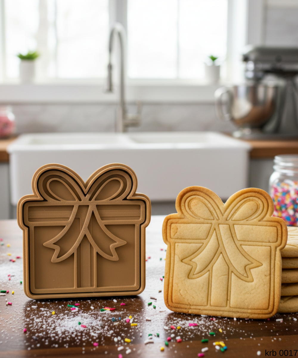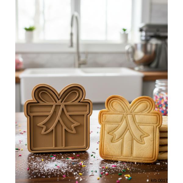 Bu çift parçalı hediye kutusu (gift box) kalıbı, gıda temasına uygun PLA malzemeden üretilmiştir. Büyük fiyonk detayı, düzenli kutu hatları ve geniş yüzey yapısıyla kurabiye, şeker hamuru ve oyun hamuru çalışmalarında son derece net, pürüzsüz ve estetik sonuçlar sunar.