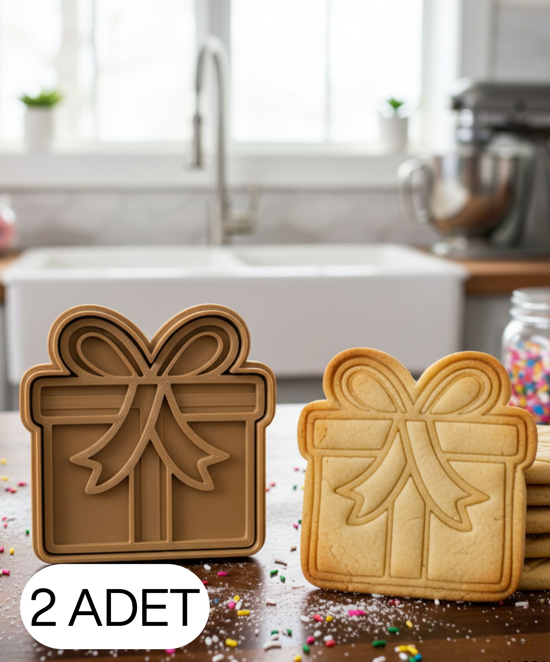 Bu çift parçalı hediye kutusu (gift box) kalıbı, gıda temasına uygun PLA malzemeden üretilmiştir. Büyük fiyonk detayı, düzenli kutu hatları ve geniş yüzey yapısıyla kurabiye, şeker hamuru ve oyun hamuru çalışmalarında son derece net, pürüzsüz ve estetik sonuçlar sunar.