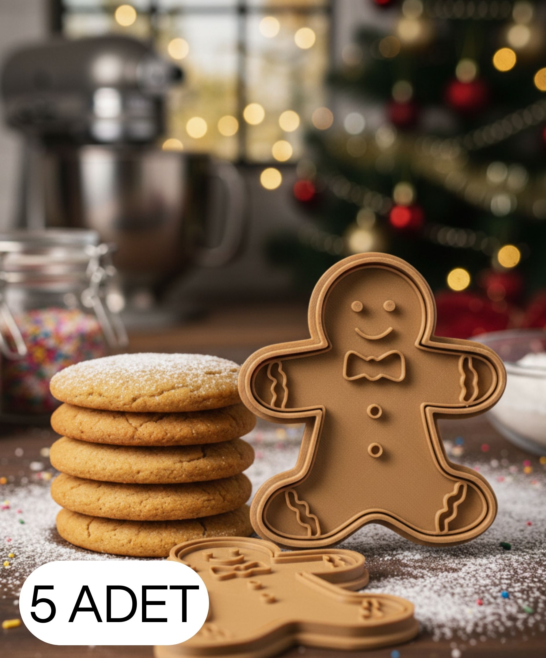 Bu çift parçalı Gingerbread Adam (Zencefilli Adam) kalıbı, gıda temasına uygun PLA malzemeden üretilmiştir. Papyonu, düğme detayları, kol ve bacaklardaki kıvrımlı yılbaşı süs çizgileri ile klasik gingerbread karakterini mükemmel şekilde ortaya çıkarır. Kurabiye, şeker hamuru ve oyun hamuru çalışmalarında temiz, düzenli ve net sonuçlar sunar.