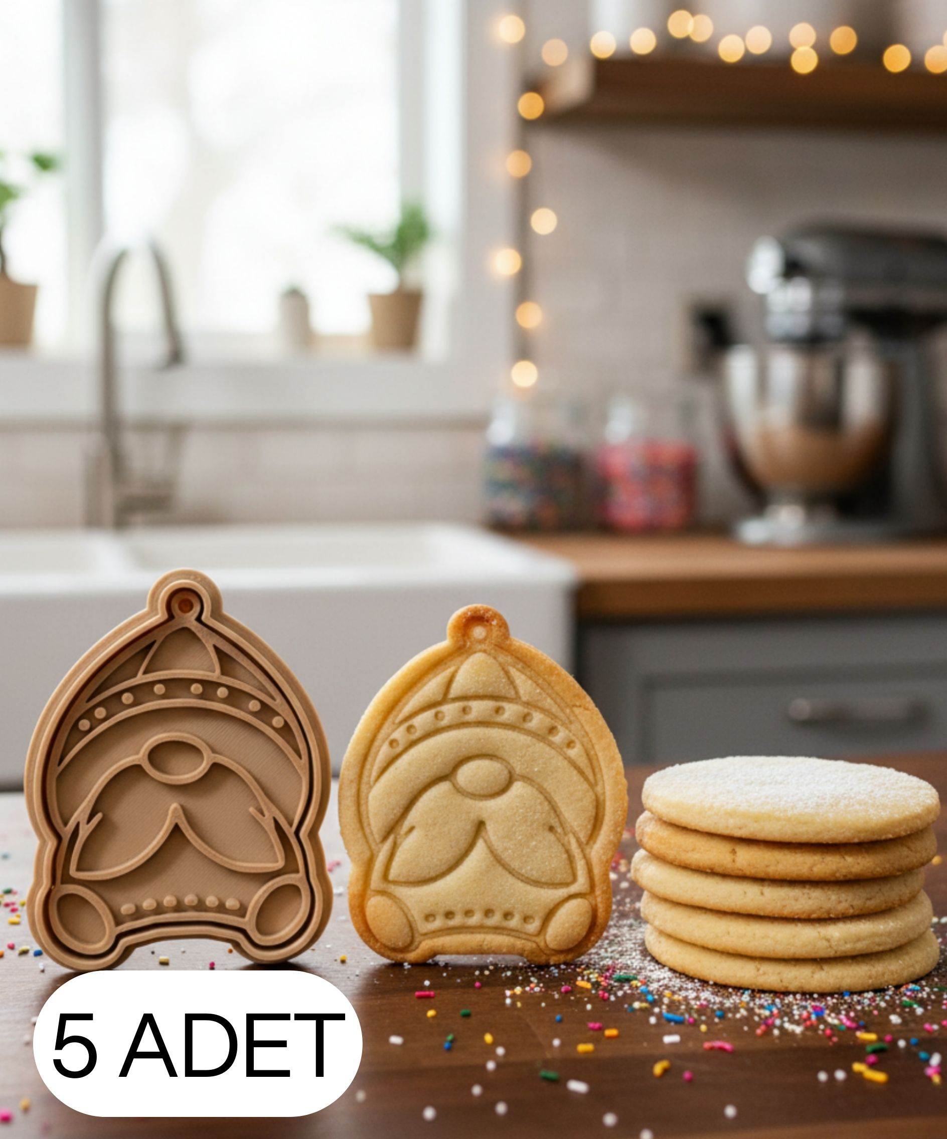 Oturan Noel Cücesi figürlü kurabiye kalıbı, gıda temasına uygun PLA malzemeden üretilmiştir. Şapka, sakal ve yüz hatları sayesinde kurabiye, şeker hamuru ve oyun hamuru çalışmalarında net, pürüzsüz ve karakterli şekiller elde edilir.