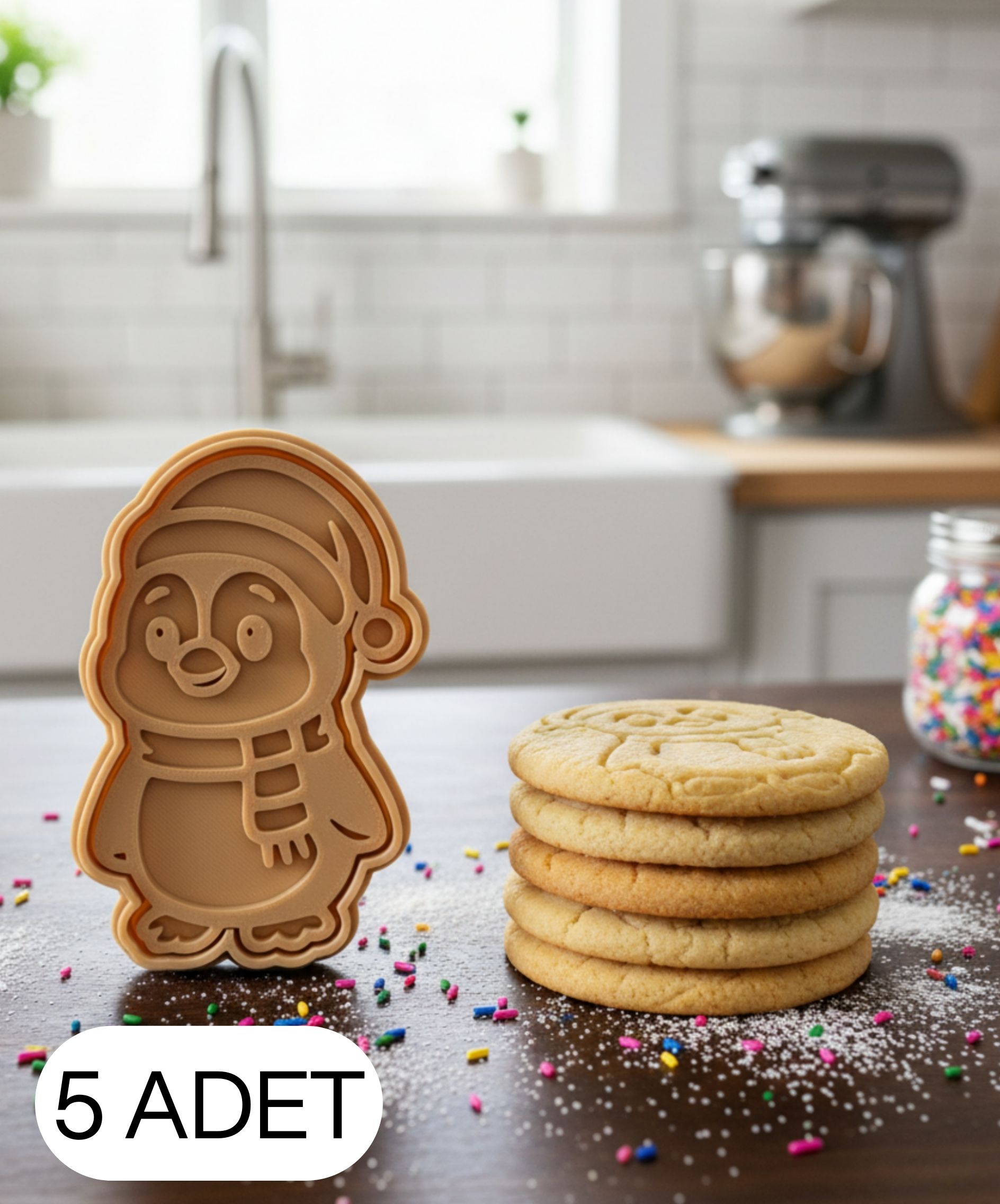 Atkılı Noel Pengueni figürlü kurabiye kalıbı, gıda temasına uygun PLA malzemeden üretilmiştir. Şapka, atkı ve yüz detayları sayesinde kurabiye, şeker hamuru ve oyun hamuru çalışmalarında net, pürüzsüz ve karakterli şekiller elde edilir.
