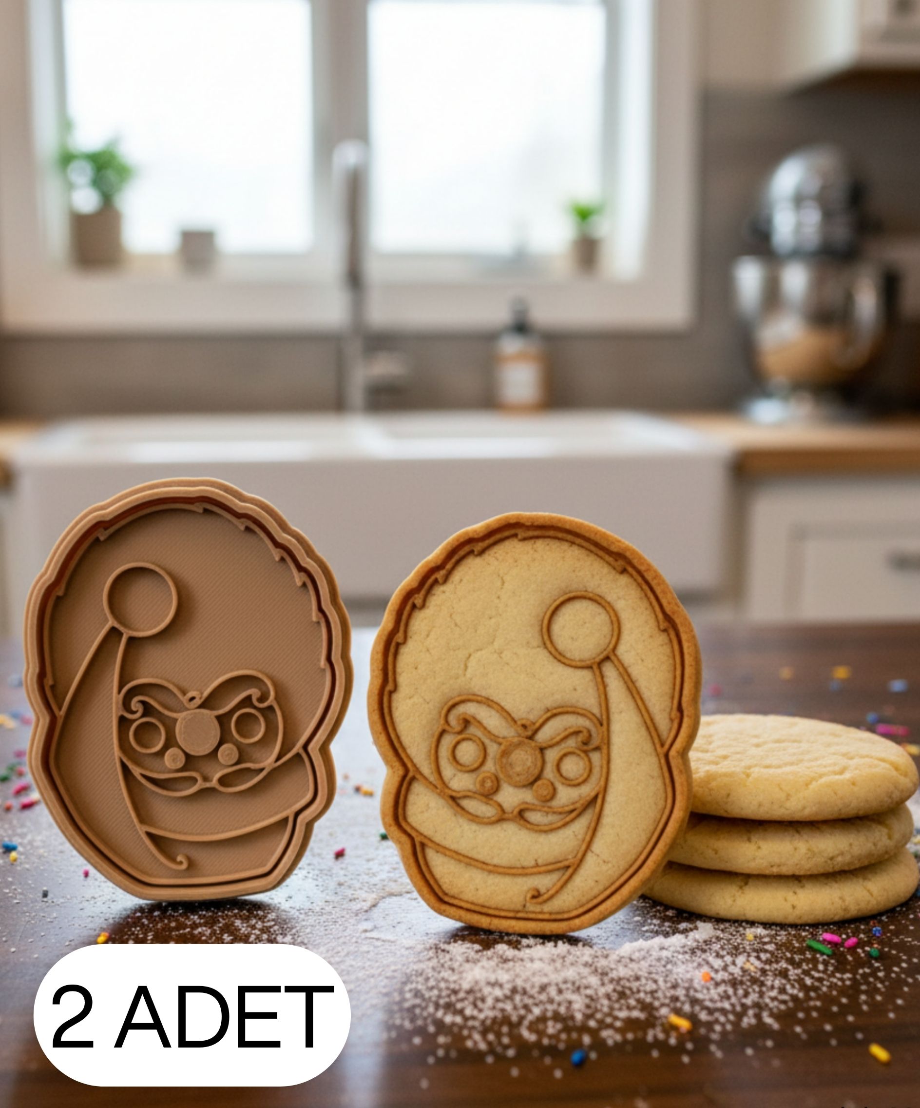 Yuvarlak çerçeveli Noel Baba figürlü kurabiye kalıbı, gıda temasına uygun PLA malzemeden üretilmiştir. Şapka, yüz hatları, burun ve sakal detayları sayesinde kurabiye, şeker hamuru ve oyun hamuru çalışmalarında net, pürüzsüz ve karakterli şekiller elde edilir.