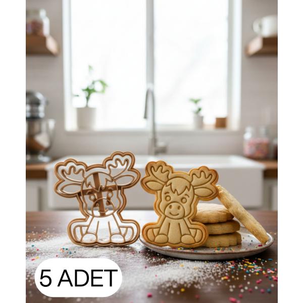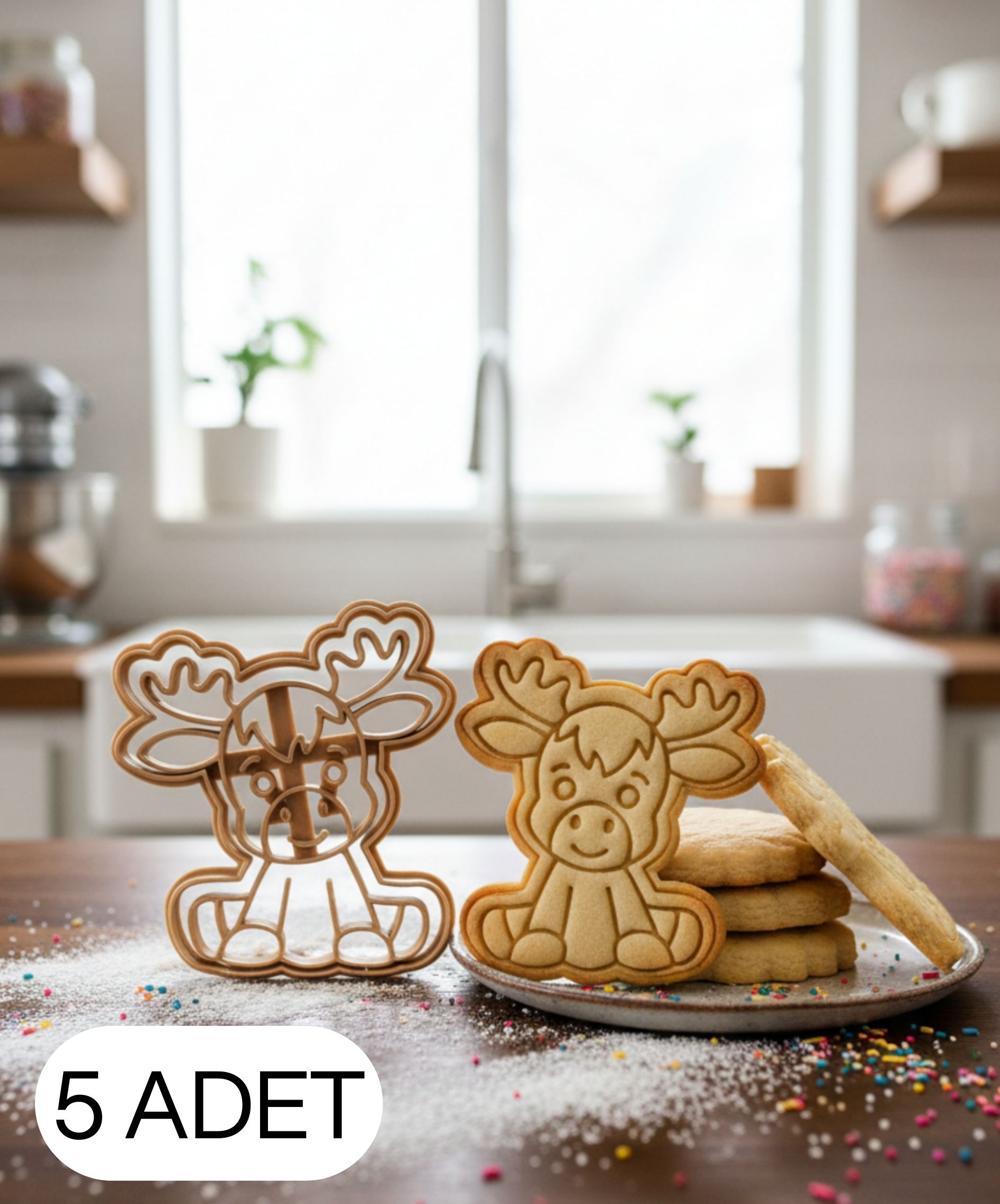 5Li Sevimli Geyik Kurabiye Kalıbı Yılbaşı Temalı Çift Parça Hamur Kesici Şeker ve Oyun Hamuru İçin