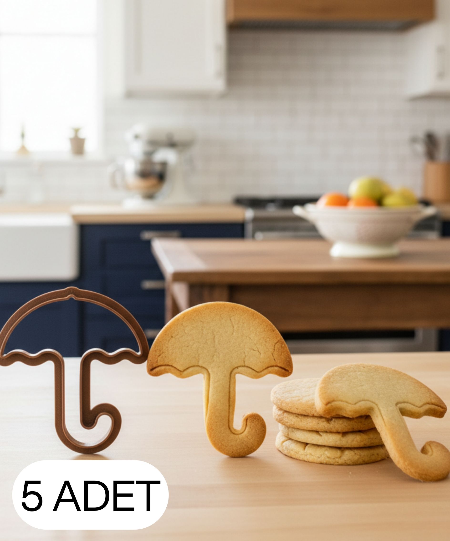 5Li Şemsiye Figürlü Kurabiye Kalıbı ve Hamur Kesici Şeker ve Oyun Hamuru İçin Tek Parça Kalıp