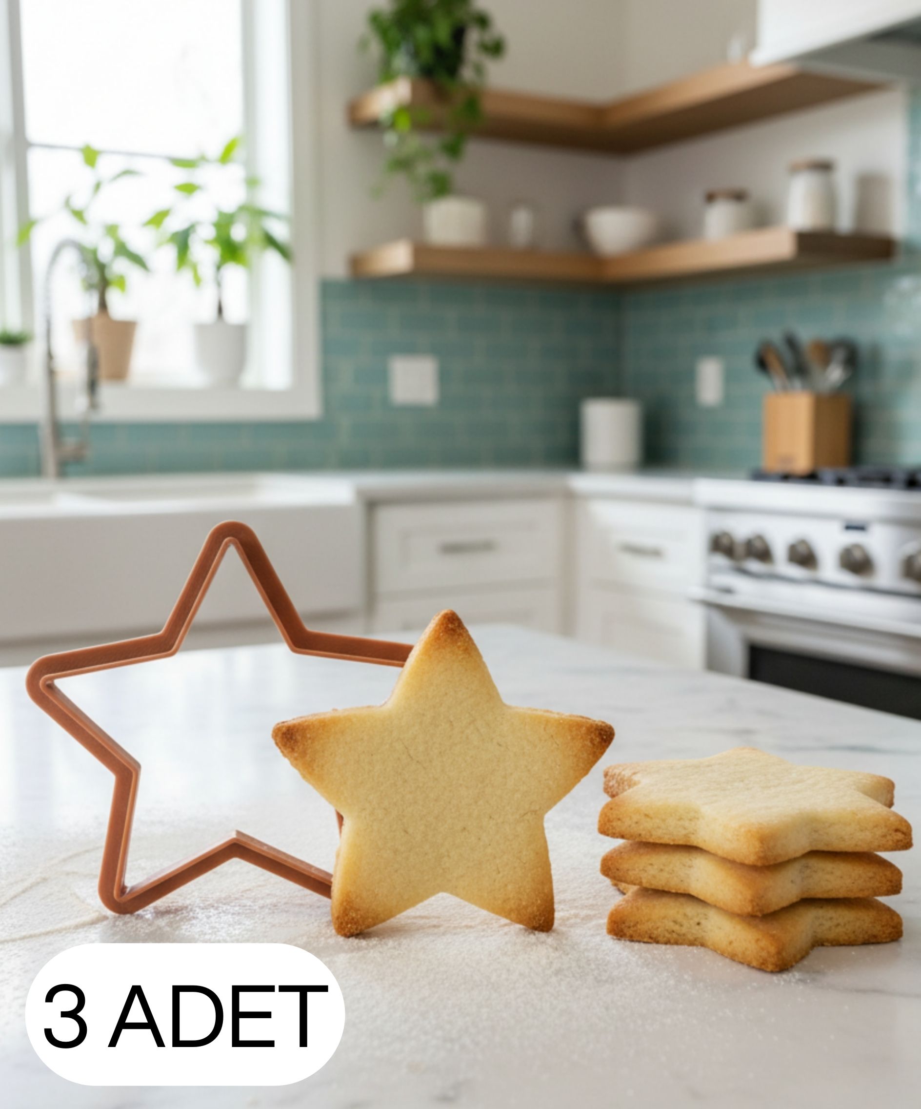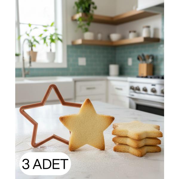 3Lü Yıldız Figürlü Kurabiye Kalıbı ve Hamur Kesici Şeker ve Oyun Hamuru İçin Tek Parça Kalıp