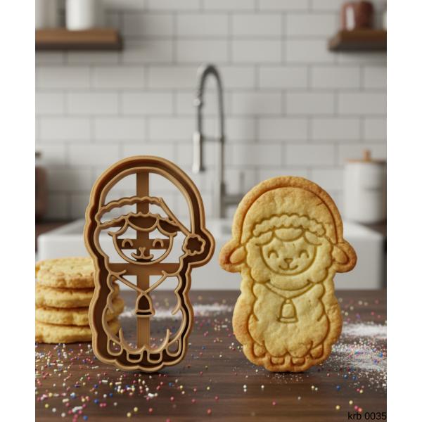 Çanlı Noel Kuzusu Kurabiye Kalıbı Şapkalı Sevimli Kuzu Figürlü Çift Parça Şeker ve Oyun Hamuru Kesici