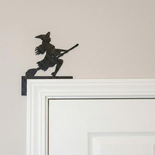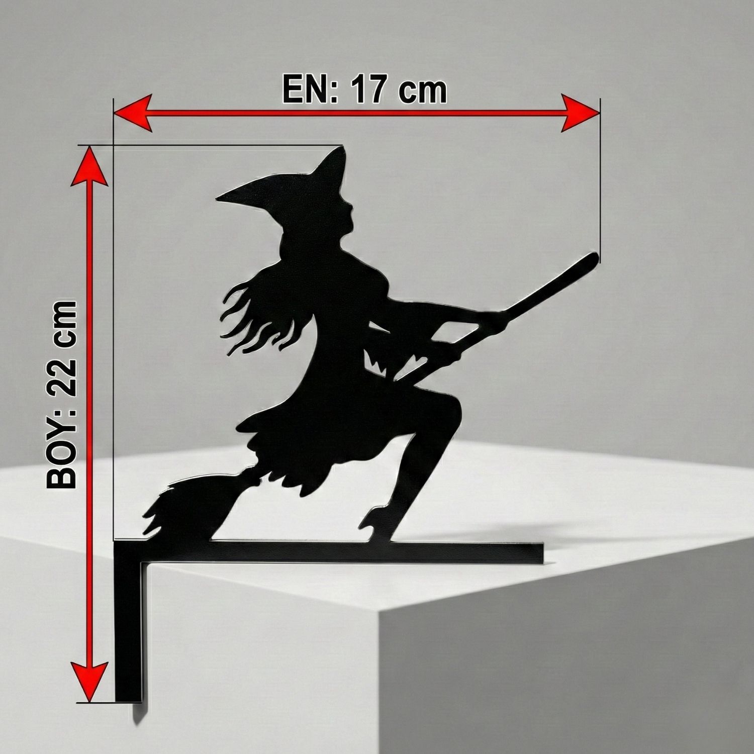 Cadı Figürlü Kapı Köşe Dekoru, kapı çerçevesinin üst köşe bölümünde kullanılmak üzere tasarlanmış figür formunda dekoratif bir aksesuardır. Süpürge üzerindeki cadı silüeti, kapı girişinde net bir tema oluşturarak alanın görünümünü daha dinamik hale getirir.
