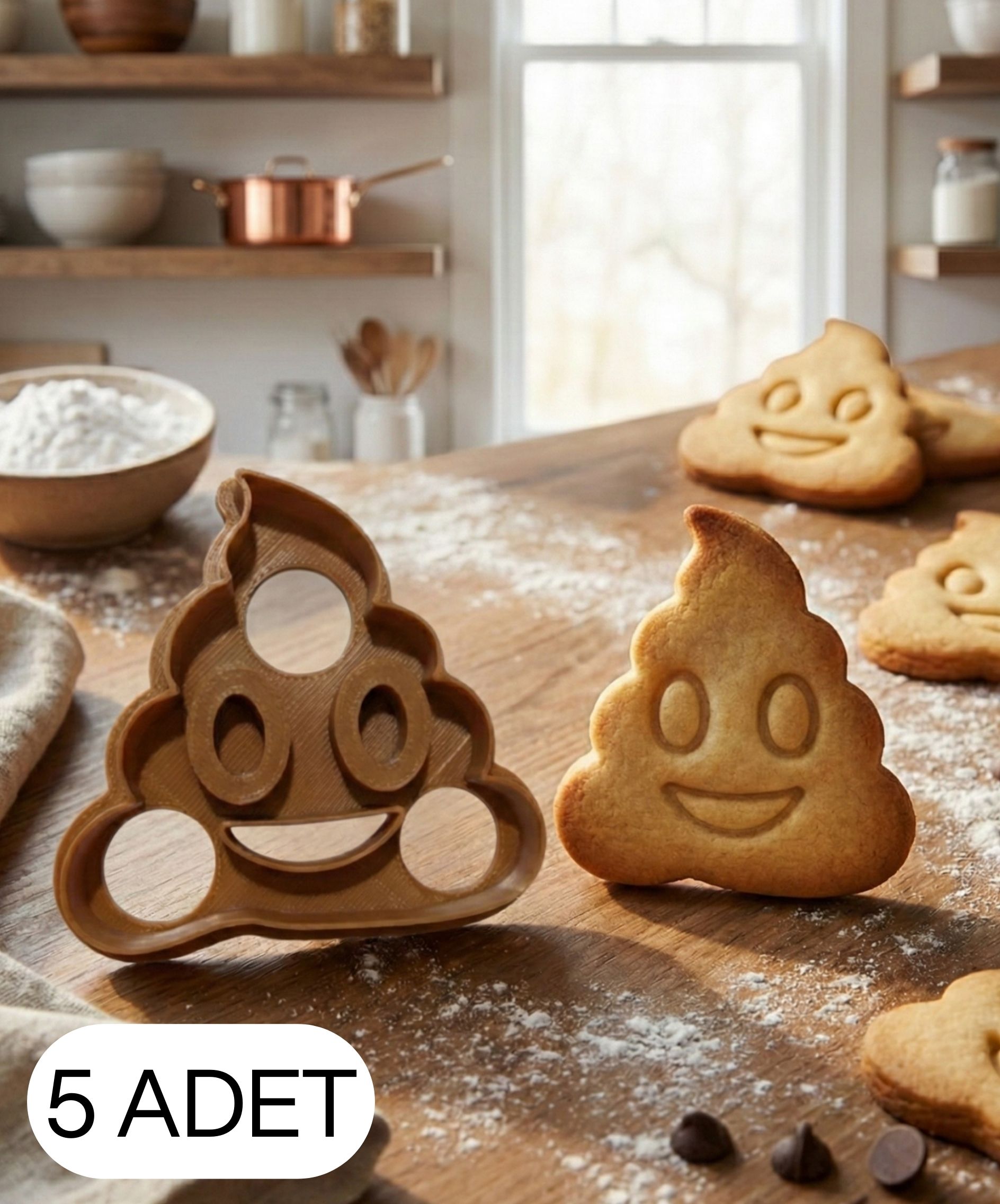 Bu ürün tek parça olarak üretilmiştir. Emoji figürlü kurabiye kalıbı ve hamur kesici, gıda temasına uygun PLA malzemeden üretilmiştir. Yüz ifadesi ve yuvarlak hatları sayesinde kurabiye, şeker hamuru ve oyun hamuru çalışmalarında net, temiz ve eğlenceli bir desen çıkışı sağlar. Mizah temalı partiler, arkadaş buluşmaları, şaka konseptli organizasyonlar ve eğlenceli sunumlar için ideal bir figürdür. Alışılmış kalıpların dışında, tamamen eğlence odaklı özel bir tasarımdır.