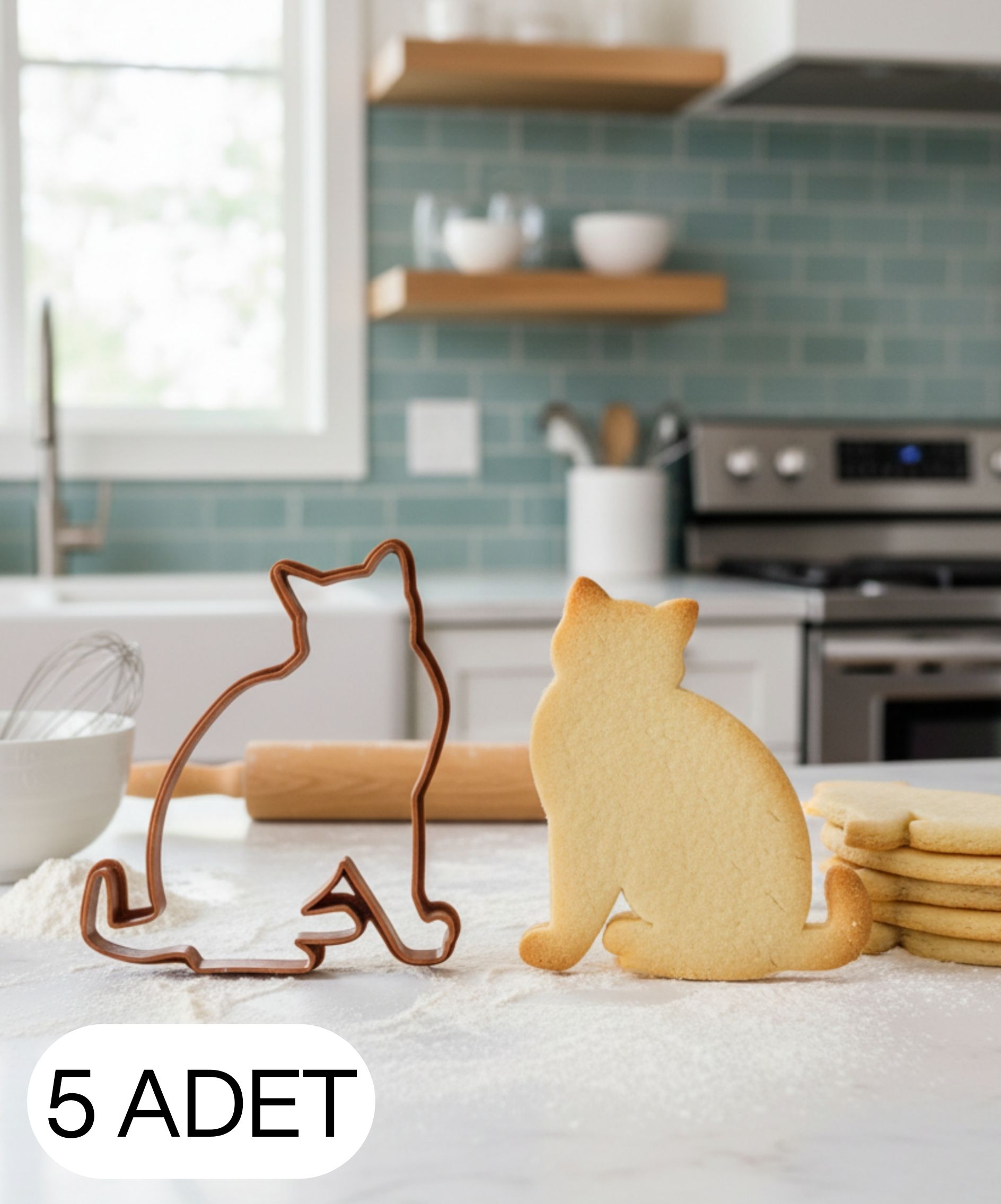 5Li Kedi Figürlü Maxi Boy Kurabiye Kalıbı Hamur Kesici Şeker ve Oyun Hamuru İçin Tek Parça