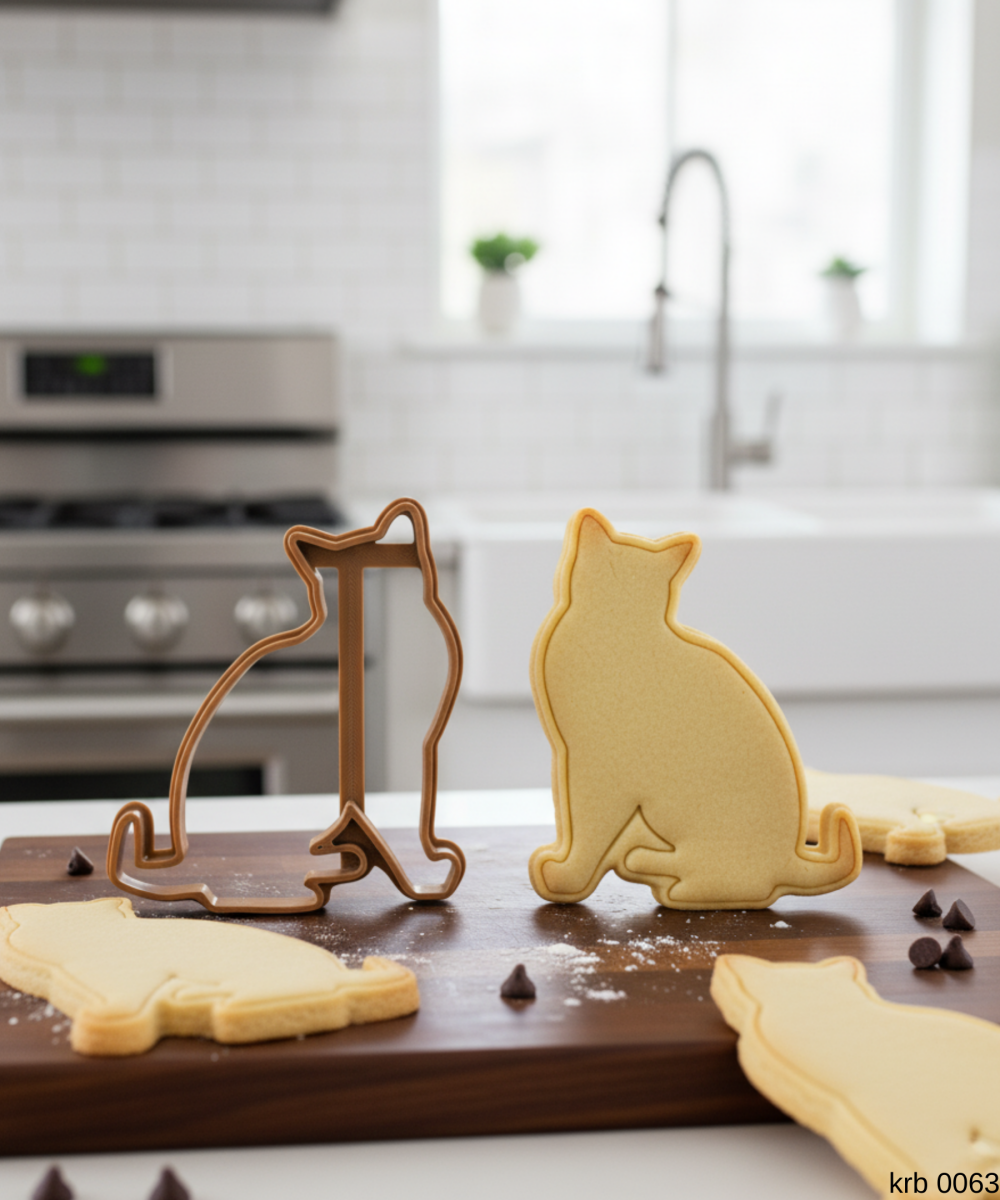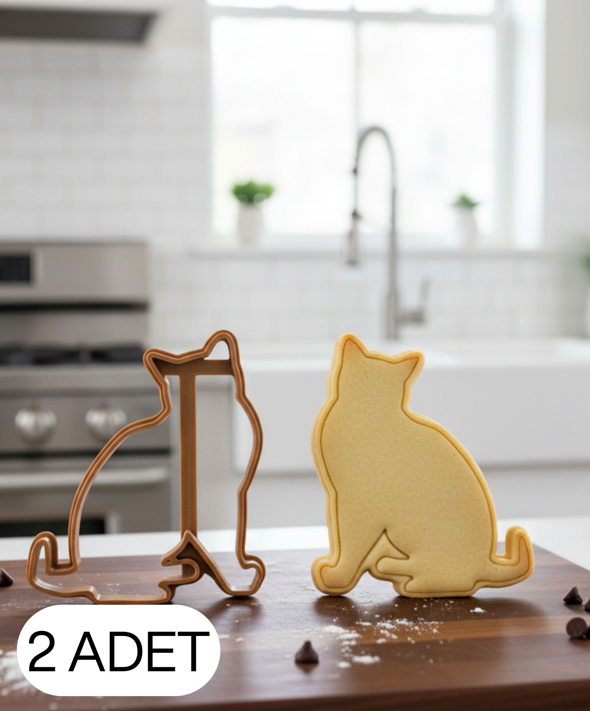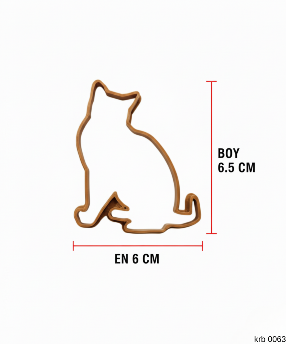 Bu ürün tek parça dış kesici formdan oluşmaktadır. Yan profili hafif dönük oturan kedi figürlü kurabiye kalıbı ve hamur kesici, gıda temasına uygun PLA malzemeden üretilmiştir. Kedinin baş eğimi, sırt hattı ve kıvrımlı kuyruğu sayesinde kurabiye, şeker hamuru ve oyun hamuru çalışmalarında net, temiz ve duygusal bir siluet çıkışı sağlar. Evcil hayvan temalı sunumlar, kedi severlere özel kurabiyeler, hatıra konseptleri ve anlam yüklü hediye setleri için ideal bir figürdür. Başının hafif dönük olması figüre canlı ve doğal bir ifade kazandırır.