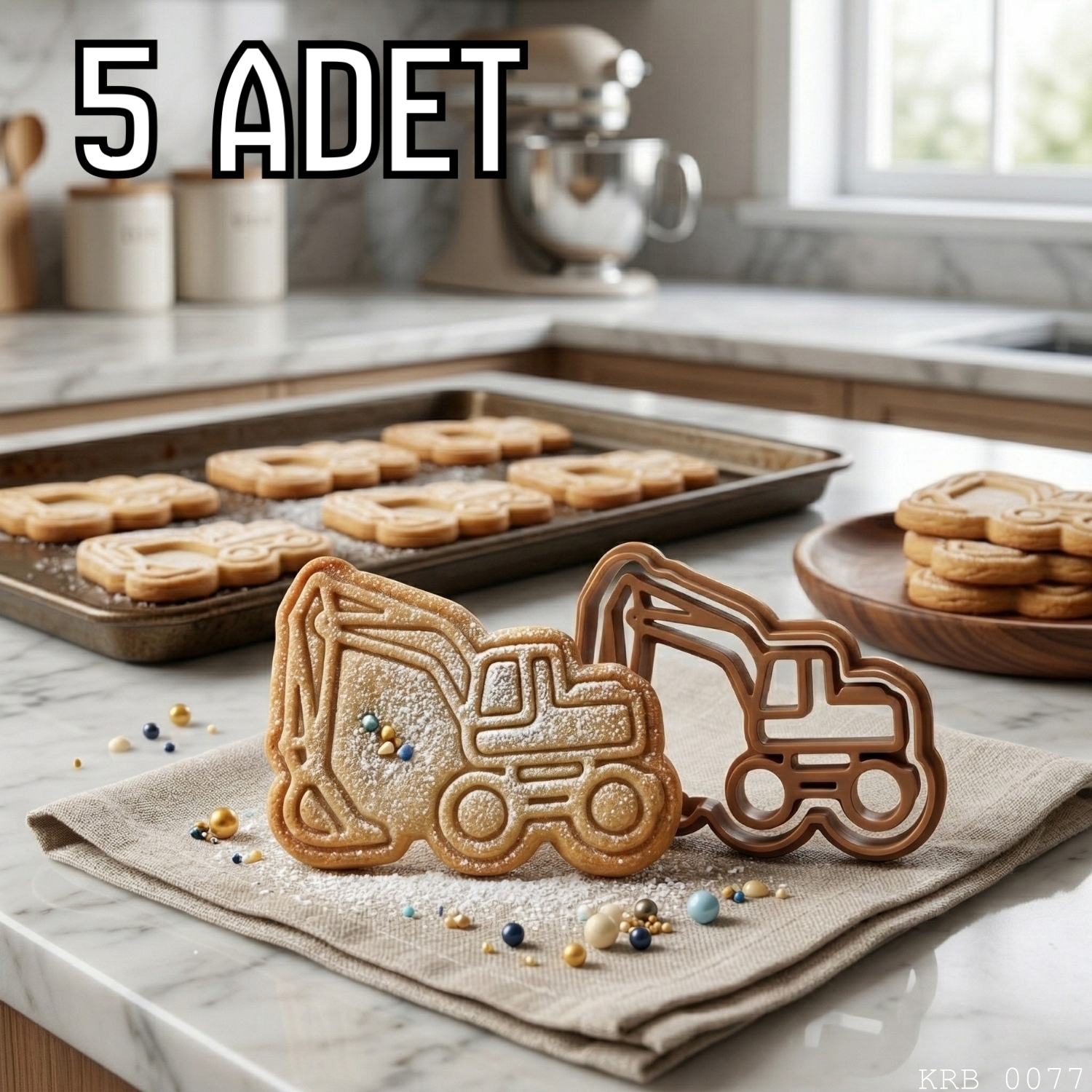 5Li Ekskavatör Figürlü Hamur Şekillendirici Kurabiye Kalıbı Oyun Hamuru Kalıbı 8 cm