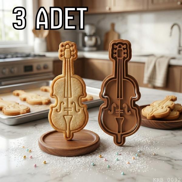 3Lü Viyolonsel Figürlü Hamur Şekillendirici Kurabiye Kalıbı Oyun Hamuru Kalıbı 10 5 cm